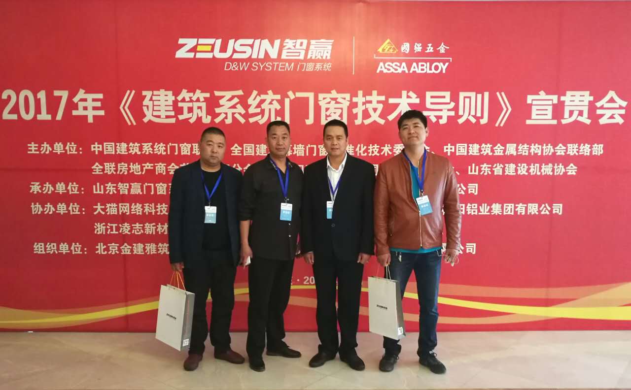 2017年4月16日,山東智贏門窗系統有限公司承辦的《建筑系統門窗技術導則》宣貫會在山東棗莊成功舉辦。中國建筑金屬結構協會秘書長、全聯房地產商會顧問劉哲;中國建筑系統門窗聯盟執行理事長兼秘書長孟繁軍;中國住建部幕墻門窗標準化技術委員會秘書、全國住建幕墻門窗標準化技術委員會委員及秘書處主任劉會濤;中國住建金屬協會副會長張俊乾;山東省建設機械協會會長張永光;連云港市門窗協會會長潘國柱;大眾日報棗莊記者站站長張環澤、山東廣播電視臺棗莊記者站站長張昌興等300多人參加了本次會議。