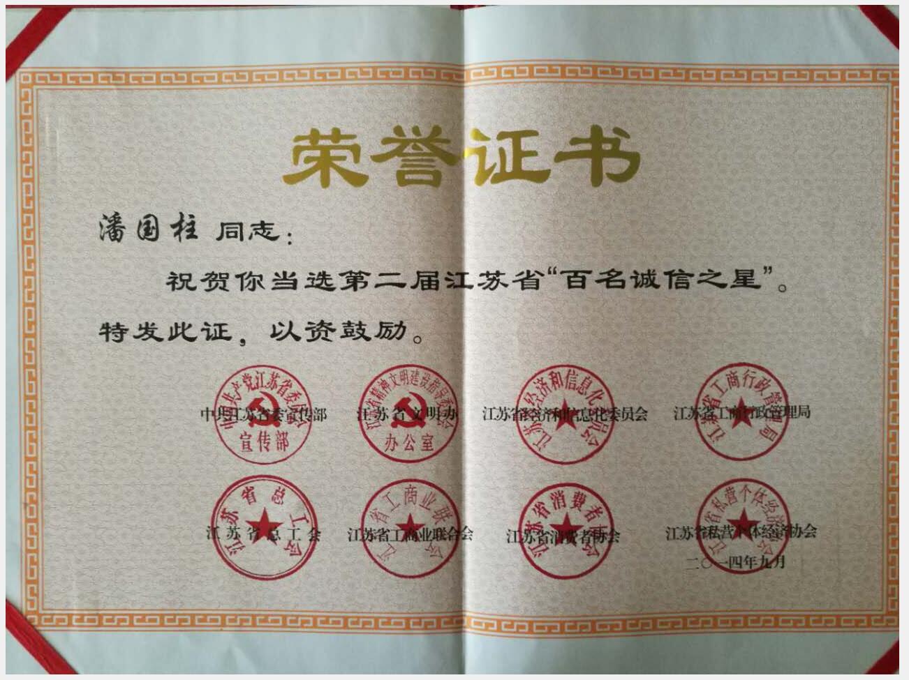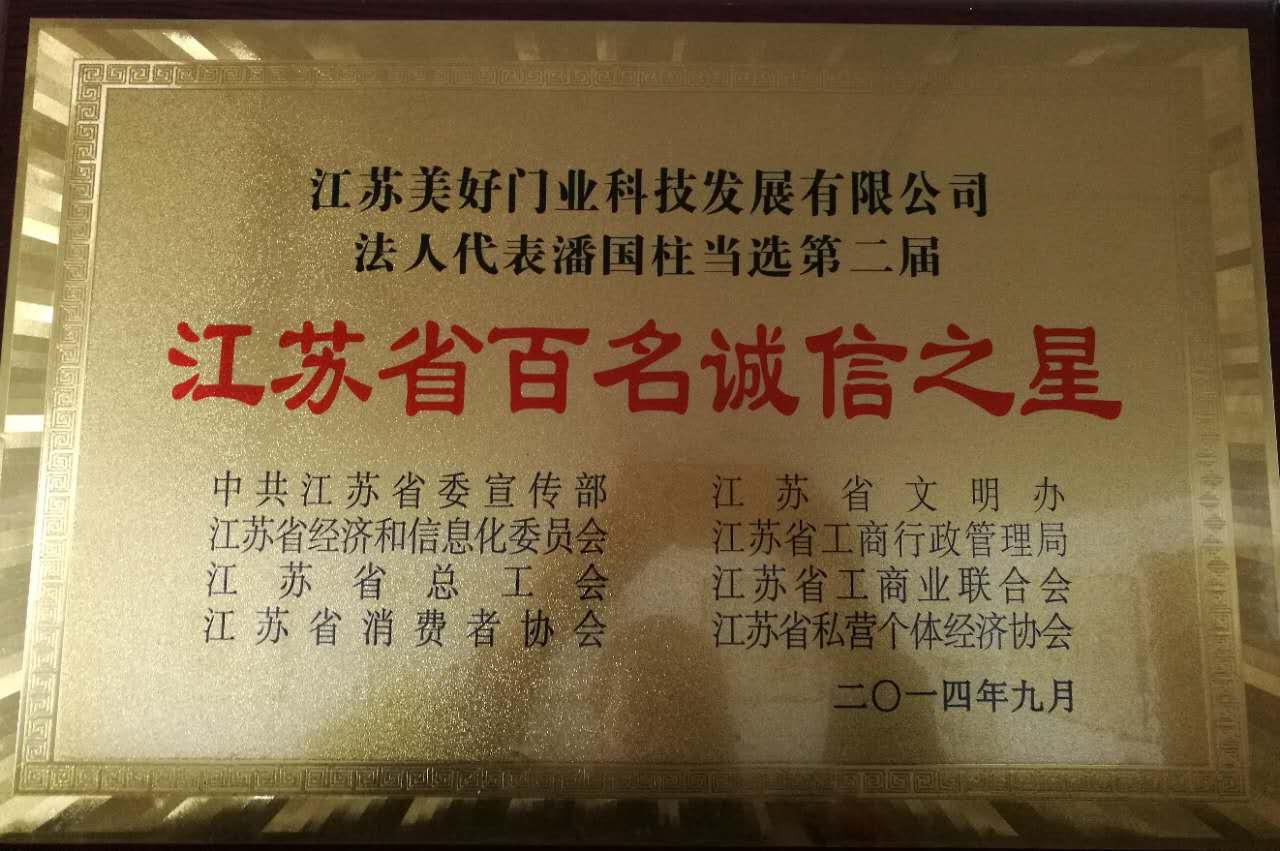 江蘇美好門業(yè)科技發(fā)展有限公司法人代表潘國柱當(dāng)選第二屆江蘇省百名誠信之星