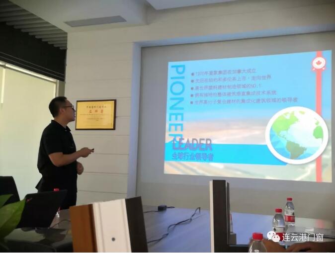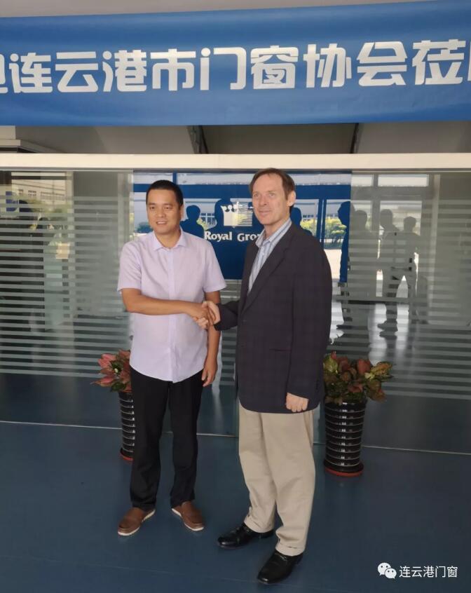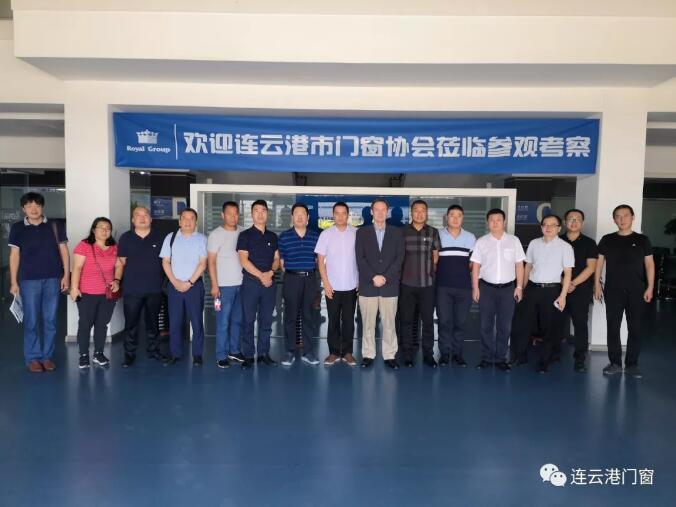??? 應加拿大皇家建材集團美國駐中國區副總裁MR.Darren達人先生邀請,連云港市門窗協會會長、黨支部書記潘國柱、副書記蒯學通、副會長過洋、孫華才、戴隆強、楊武、執行秘書長唐春和、常務理事張祥府一行赴皇家建材集團天津工廠參觀交流。